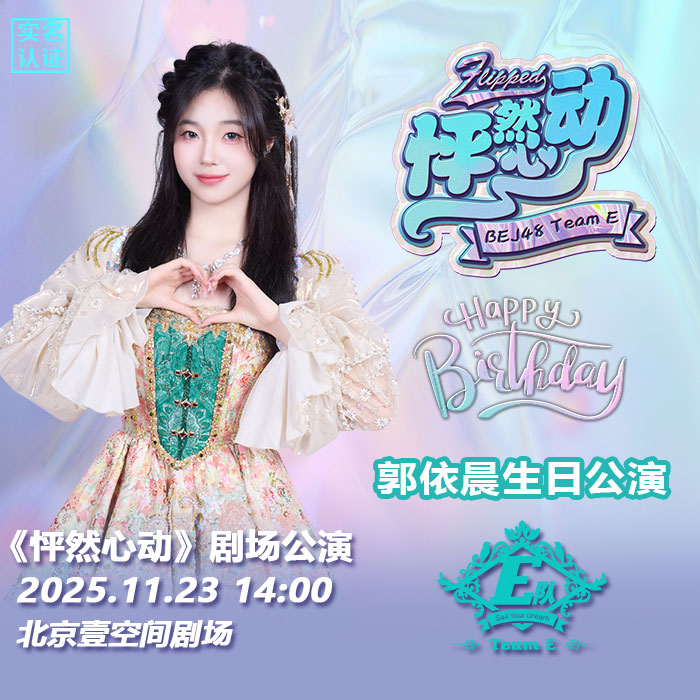 11月23日BEJ48 TEAM E剧场公演时间为14:00,《怦然心动》剧场公演 郭依晨生日公演 实名认证检票 本场公演将进行网络直播。本场支持门票退票退款服务规则。