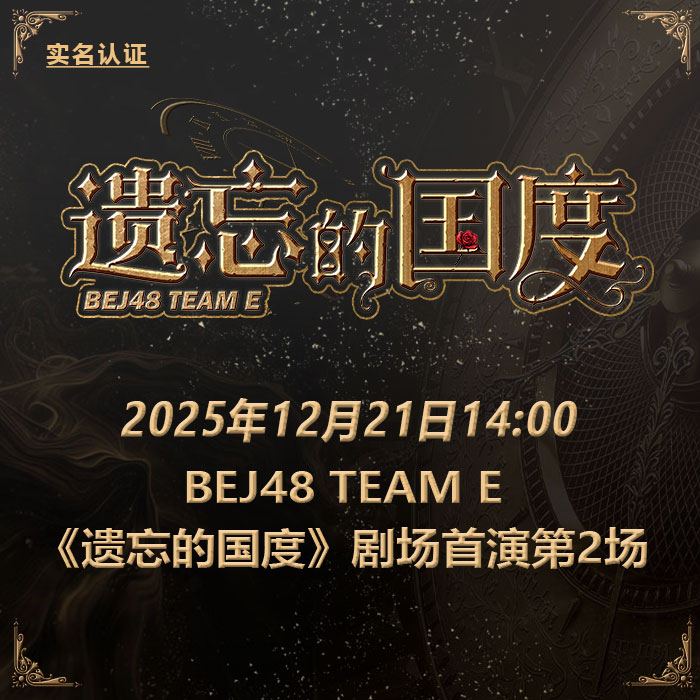 12月21日BEJ48 TEAM E剧场公演时间为14:00,《遗忘的国度》剧场首演第二场 实名认证检票 本场公演将进行网络直播。本场支持门票退票退款服务规则。