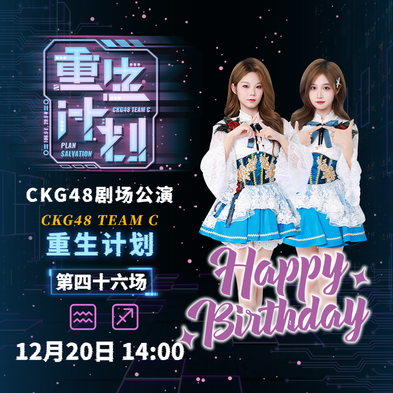 • 12月20日 CKG48 TEAM C《重生计划》·第四十六场CKG48 TEAM C《重生计划》·第四十六场