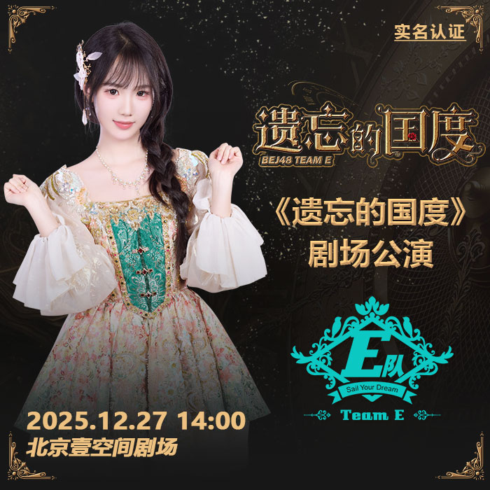 12月27日BEJ48 TEAM E剧场公演时间为14:00,《遗忘的国度》剧场公演 实名认证检票 本场公演将进行网络直播。本场支持门票退票退款服务规则。