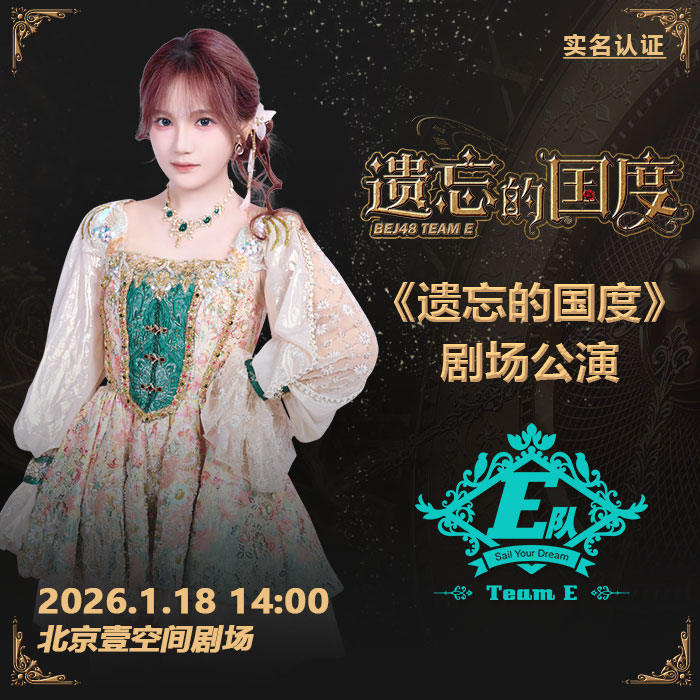 1月18日BEJ48 TEAM E剧场公演时间为14:00,《遗忘的国度》剧场公演 实名认证检票 本场公演将进行网络直播。本场支持门票退票退款服务规则。